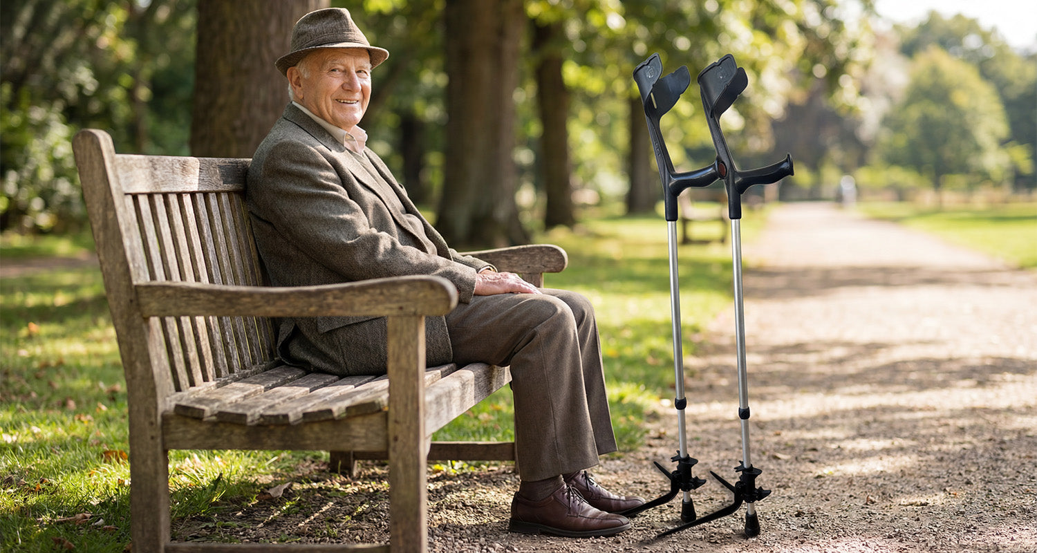 Ob im Café, im Büro oder zuhause – die Krücken sind jederzeit griffbereit und reduzieren Stolperfallen sowie lästiges Aufheben.